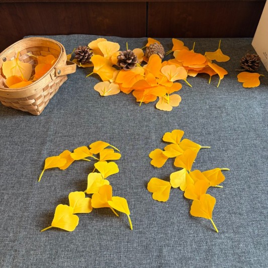 2.左側の画像に記載してあるような文字やキャラクターなどホテルに置いてあるイチョウを使ってアレンジする🌟